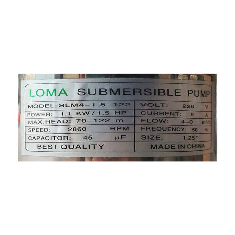 حداکثر هد: 122-70 متر فرکانس: 50 هرتز توان : 1.1 کیلووات / 1.5 اسب بخار