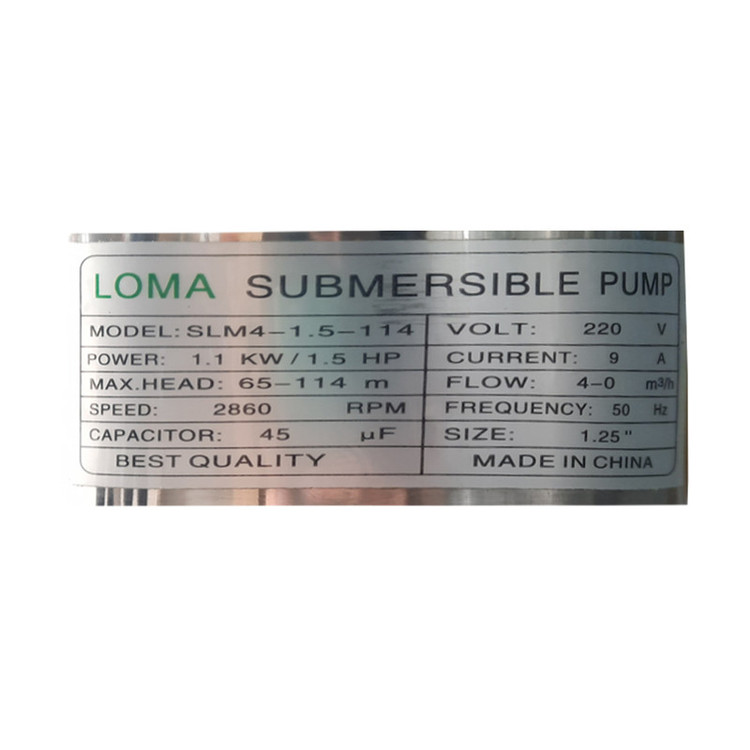 حداکثر هد: 114-65 متر فرکانس: 50 هرتز توان : 1.1 کیلووات / 1.5 اسب بخار
